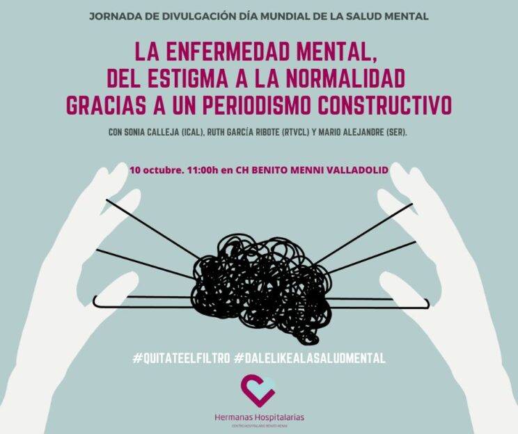 Esta Jornada divulgativa, a la que han asistido cerca de 70 personas, ha sido organizada por el Centro Hospitalario Benito Menni de Valladolid (CHBM), un centro asistencial de carácter sociosanitario de referencia en Castilla y León que está gestionado por Hermanas Hospitalarias. El CHBM se dedica a ofrecer a personas con enfermedad mental, patología psicogeriátrica, problemas psíquicos y/o físicos o que precisen de cuidados paliativos, una asistencia de calidad que promueve la salud integral, conjugando los aspectos biológicos, psíquicos y sociales con los espirituales, éticos y relacionales. Actualmente, el C.H. Benito Menni cuenta con un moderno hospital con una capacidad de 246 camas. En 2021 recibió a 1.107 pacientes, de los que 767 estuvieron hospitalizados. En consultas externas se registraron más de 7.100 pacientes. Desde aquí dar la enhorabuena al centro por esta jornada de "Periodismo y salud mental" tan necesaria, una apuesta por el periodismo constructivo y de soluciones que ayude a comprender y explicar mejor realidades sociales como la enfermedad mental.