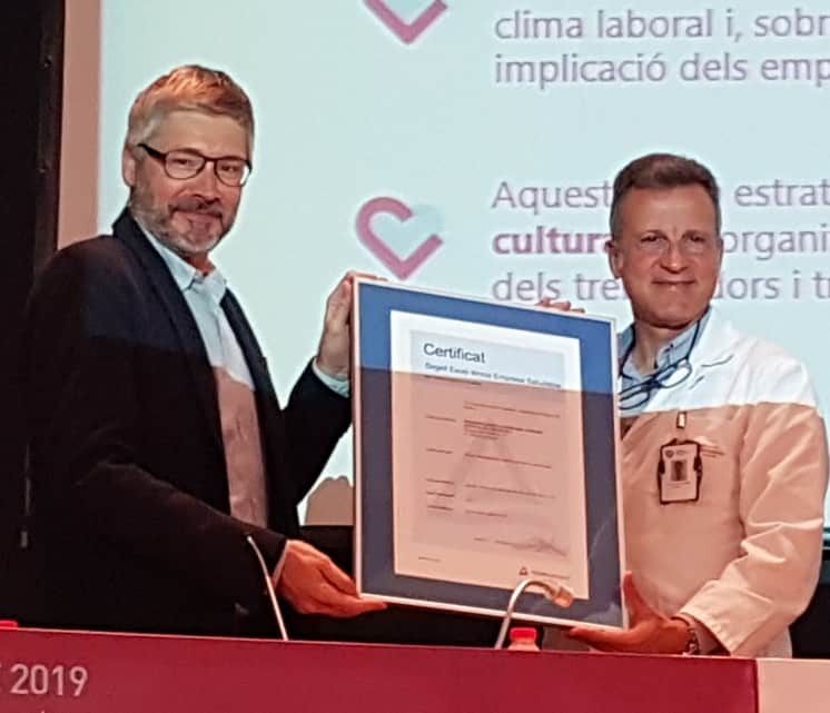 En el marco de las actividades llevadas a cabo con motivo de la Festividad Benito Menni de este año, el Hospital San Rafael de Hermanas Hospitalarias de Barcelona organizó, el 2 de mayo en el salón de actos del Centro, la jornada ‘Fem Salut’, donde se le hizo entrega del Sello de Excelencia de Empresa Saludable, por parte de la empresa TÜV Rheinland.