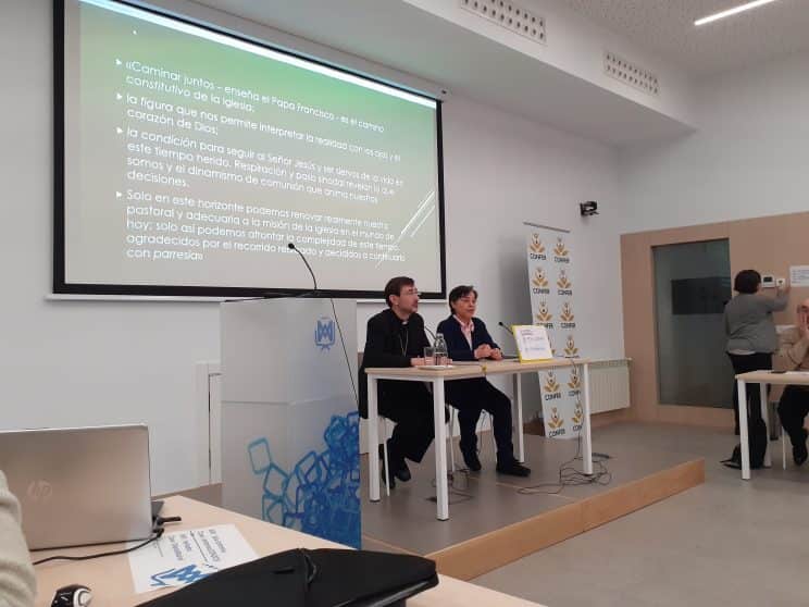 El pasado 8 de febrero, sábado, el equipo de PJV de Hermanas Hospitalarias acudía a este encuentro preparado por la CONFER. Después de la celebración de la eucaristía, Don José Cobo, Obispo Auxiliar de Madrid, iniciaba su ponencia. El título elegido fue “La sinodalidad y sus implicaciones para la vida y misión de la Iglesia”.