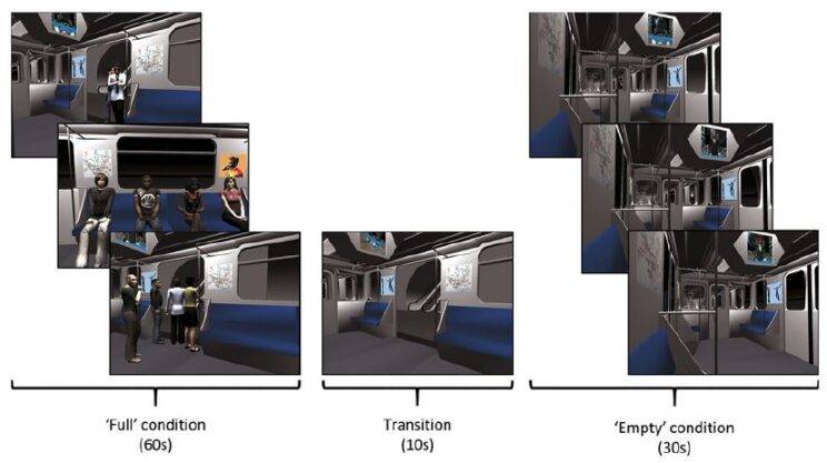 Gracias a esta inmersión, se ha visto que la experiencia virtual de un viaje en metro, en la que el participante va acompañado de avatares de otros pasajeros que miran a su alrededor, que hablan y se mueven, es capaz de evocar ideas de auto-referencia (sensación de ser observado, seguido o de ser objeto de críticas y comentarios, entre otras) tanto en personas sanas como en pacientes con esquizofrenia.