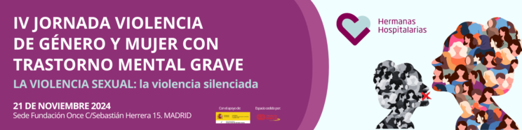 Por cuarto año consecutivo, el día 21 de noviembre Hermanas Hospitalarias organiza, en torno al 25N (Día Internacional por la Eliminación contra la Violencia de Género), la “IV Jornada violencia de género y mujer con trastorno mental grave (TMG). La violencia sexual: la violencia silenciada”. Una jornada que se celebrará en la Sede de Fundación Once de la calle Sebastián Herrera de Madrid y que se podrá seguir en streaming desde las 9h de la mañana.