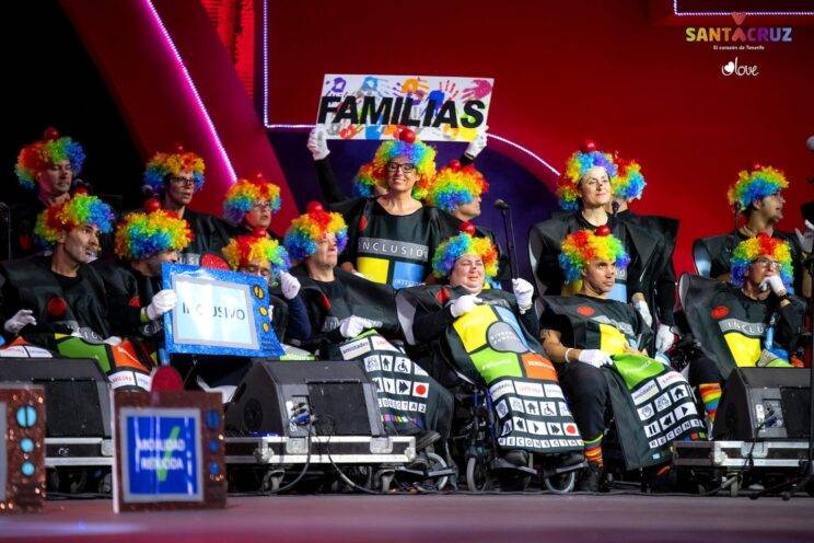Un par de horas más tardes, sobre las 18:30 horas, la organización del evento daba a la agrupación órdenes para que subieran al escenario y así mostrar al público presente la actuación más inclusiva del Carnaval Chicharrero. Y así fue, el y la presentadora de la Gala daba pie a los chicos y chicas con DCA y a colaboradores y colaboradoras de la Entidad- integrantes de la Murga- para cantar a la sociedad un mensaje de inclusión para todas las personas y agradecer a las familias, porque sin ellas, todo esto no sería posible.