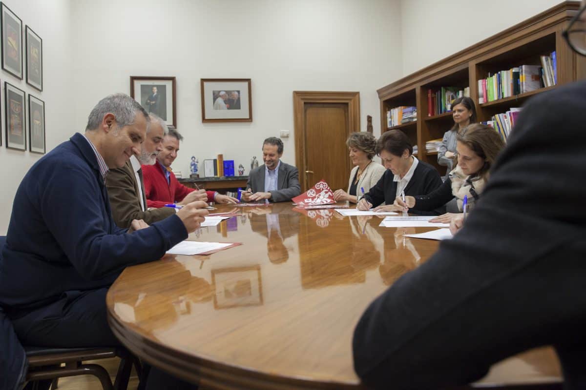 En un acto organizado en la Universidad de ICADE- ICAI representantes de Instituciones religiosas y otras entidades como Caritas Española, Save the Children, Villa Teresita, Esclavas del Sagrado Corazón de Jesús, EMET ARCOIRIS, Universidad Pontificia Comillas, Hermanas Hospitalarias del Sagrado Corazón de Jesús, La Merced Migraciones y Jesuitas Social. Hemos firmado nuestra adhesión a un Proyecto que tiene como objetivo trabajar con colectivos de personas en riesgo de trata.