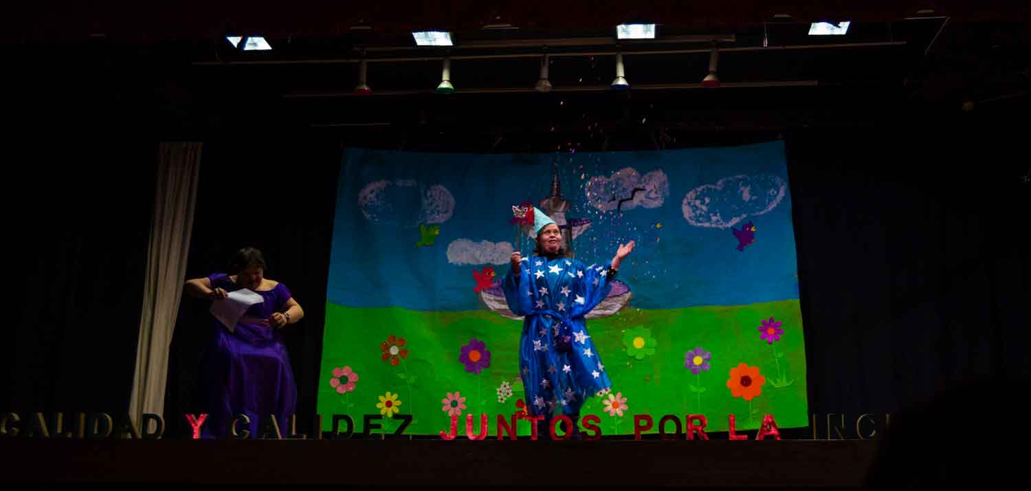 La sorpresa llegó con una bonita obra de teatro protagonizada por los usuarios Centro de Atención Diurna (CAD) titulada “Bibidi Babili Bu” y con la interpretación de la canción “Acamán puede volar”, interpretada por los alumnos del Colegio.