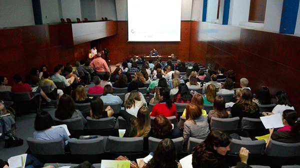 Alrededor de 150 personas, entre familiares y profesionales sociosanitarios, han participado en las III Jornadas Profesionales sobre el Síndrome de Angelman celebradas en Madrid los días 4 y 5 de junio de 2016. En la apertura de este encuentro de aprendizaje entre la Asociación Síndrome de Angelman y la Red Menni de Hermanas Hospitalarias, sor Purificación Pardo destacó un objetivo común: la mejora de la calidad de vida de personas y familias que conviven con la discapacidad. Las familias agradecen mucho este tipo de foros, donde aprenden y comparten sus experiencias. Aunque el diagnóstico de niños y niñas con síndrome de Angelman cada vez se emite antes, con frecuencia los padres no saben dónde acudir, qué hacer y, en muchas ocasiones, ni siquiera conocen las ayudas públicas a las que pueden acceder. Al cierre de estas III Jornadas, la sensación que transmitían es que aún queda camino por recorrer para que la atención de estos niños sea más rápida y eficaz. Quedó de manifiesto que la clave está en unirse para hacer fuerza y entre todos seguir avanzando. Los profesionales que participaron ampliaron su información sobre este síndrome tan desconocido para tantos, pues hasta la fecha, pocas son las personas que tienen un buen conocimiento sobre él. Dentro de la Red Menni de Daño Cerebral, en Madrid, Valladolid, Valencia y Bilbao, se han desarrollado servicios ambulatorios de rehabilitación infantil que han adquirido personalidad propia. En estos centros la atención combina el seguimiento médico con la atención multidisciplinar a cargo de fisioterapeutas, terapeutas ocupacionales, logopedas y neuropsicólogos, siendo capaces de ofrecer una atención adecuada y de alto nivel a estas personas tan especiales, llamadas por las propias familias y especialistas “ángeles”. Seguir leyendo: http://dañocerebral.es/las-unidades-de-rehabilitacion-infantil-de-la-red-menni-profundizan-en-el-tratamiento-del-sindrome-de-angelman/