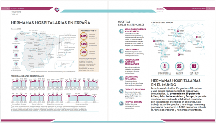 En esta Memoria RSI, no podemos dejar de dar las gracias a nuestros más de 7.000 colaboradores y a las hermanas por su profesionalidad, compromiso y entrega y por tantos Gestos de Hospitalidad que nos habéis dejado en un año tan difícil.