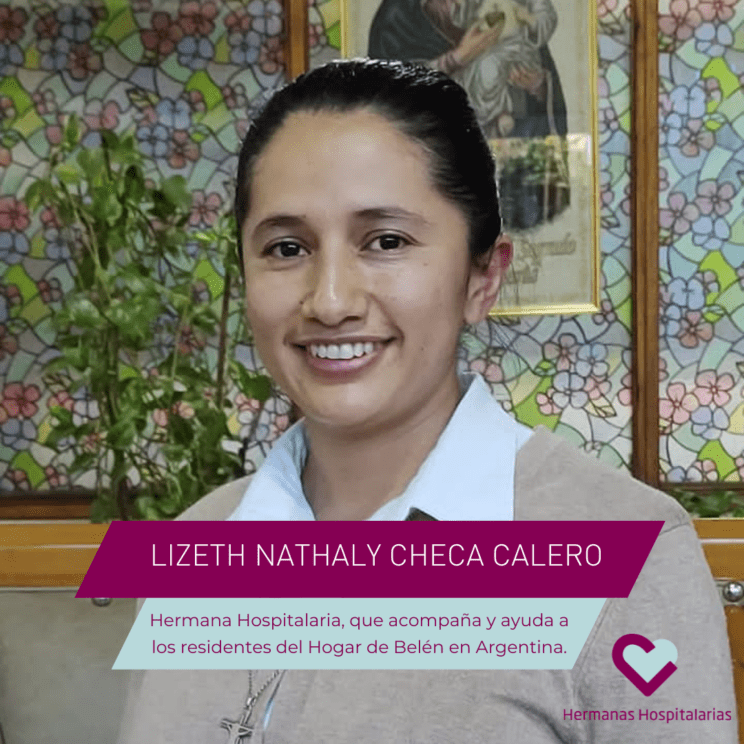 Hoy os presentamos a Lizeth Nathaly Checa Calero, Hermana Hospitalaria que acompaña y ayuda a los residentes del Hogar de Belén en Argentina en las diferentes actividades diarias. Un centro que pertenece a nuestra obra hospitalaria en Argentina y que cuenta con un área asistencial de Psicogeriatría y Salud Mental en el que se presta una atención especializada e integral tanto para las personas con trastornos mentales como a sus familias, que comprende tratamiento farmacológico, psicoterapéutico, rehabilitación psicosocial y apoyo a la integración social.