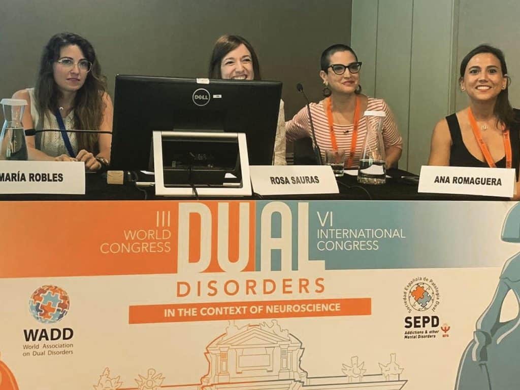 Un taller en el que participaron junto a la doctora Romaguera tres colegas del INAD del Parc de Salut Mar de Barcelona: como ponentes María Robles, psiquiatra del CAS Fòrum, y Natàlia Ribas Muñoz, trabajadora social de la Unidad de Patología Dual y CAS Fòrum; moderaba la mesa Rosa Sauras, psiquiatra de la Unidad de Patología Dual del Centre Fòrum.