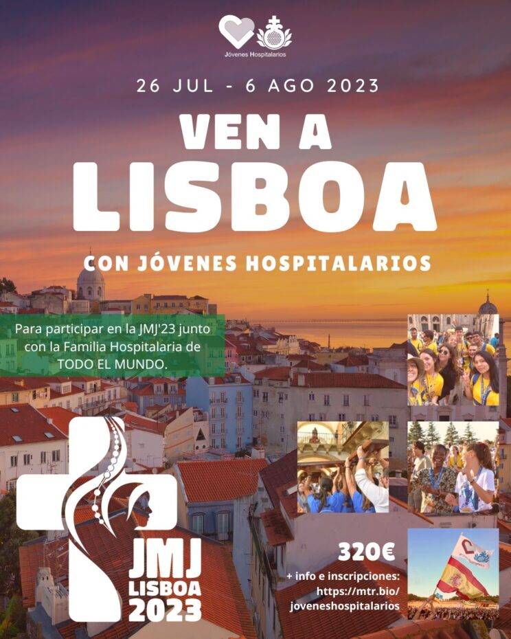 La Jornada Mundial de la Juventud (JMJ) es un encuentro de jóvenes de todo el mundo con el Papa. Y es, además, una peregrinación, una fiesta de la juventud, una expresión de la Iglesia universal y un fuerte momento de evangelización del mundo juvenil. La XXXVII edición de la Jornada Mundial de la Juventud de la Iglesia católica se realizará en Lisboa desde el 1 al 6 de agosto del 2023. Será la primera vez que el evento se realice en Portugal y la tercera en la península ibérica después de las ediciones de Santiago de Compostela en 1989 y Madrid en 2011. Desde Jóvenes Hospitalarios, vamos a participar en los días principales de la JMJ con el Papa y todos los jóvenes del mundo. Se invita a vivir unos días con la Familia Hospitalaria, conociendo centros de Portugal, así como visitando Fátima y Montemor-o-Novo. Así, la estancia previa a la JMJ se llevará a cabo del 26 al 31 de julio. Una ocasión única para convivir y conocer más a la Familia Hospitalaria de todo el mundo. Durante estos días se visitarán Idanha y Telhal (Lisboa), Sintra, Fátima, Leiria y Montemor-o-Novo. A continuación, se asistirá a la Jornada Mundial de la Juventud, que se desarrollará en Lisboa del 1 al 6 de agosto. Allí se podrá compartir con la juventud católica mundial conciertos, catequesis, festivales y los eventos centrales con el Papa Francisco en Lisboa.