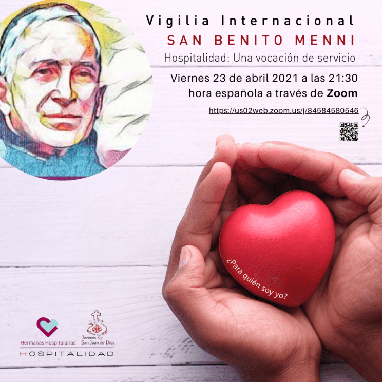 El próximo viernes 23 de abril a las 21:30h a través de ZOOM, celebraremos juntos una vigilia de oración para dar gracias a Dios por la vocación de San Benito Menni y por el don de la Hospitalidad que nos dejó como legado.