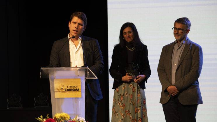 El Premio Carisma de Salud es para Santiago Requejo, director del cortometraje ‘Votamos’ sobre la salud mental. Un galardón que recibe acompañado de una representación de Hermanas Hospitalarias, como Institución experta en salud mental que le ha acompañado en este proyecto antiestigma. Un cortometraje que ha recibido ya 88 premios y que fue finalista en la pasada edición de los premios Goya. Santiago quiso agradecer el reconocimiento y dedicárselo a todos los profesionales que trabajan con personas con problemas de salud metal. Y especialmente, a los que trabajan en Hermanas Hospitalarias por haberle acercado a la realidad que viven estas personas, una realidad que se relata de una forma muy real y muy cercana en Votamos.